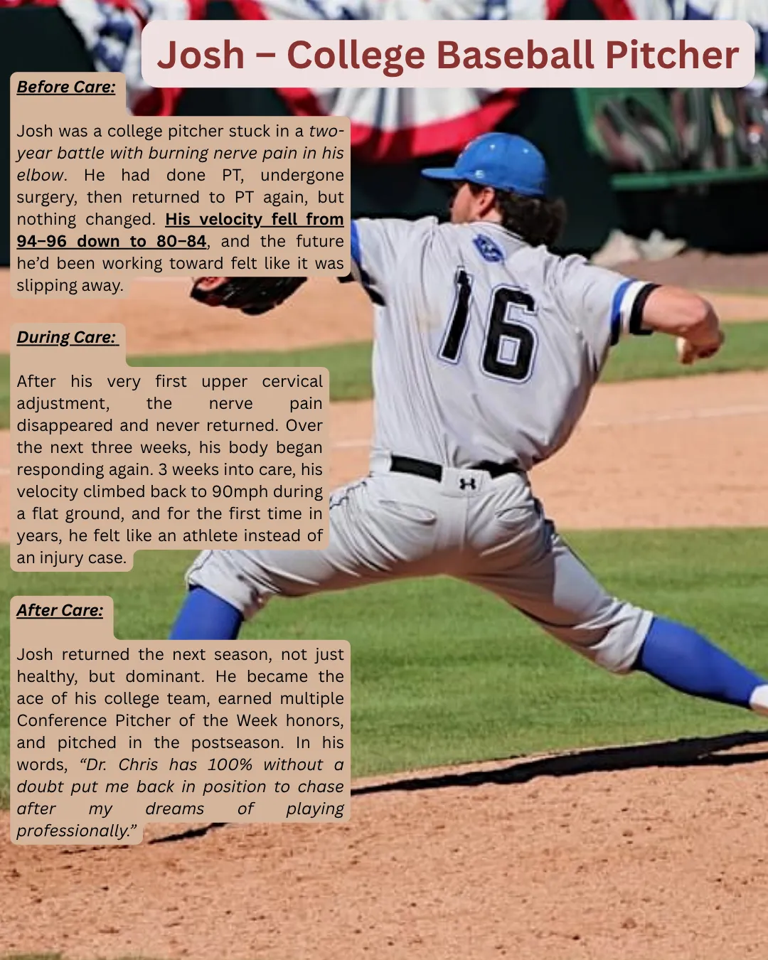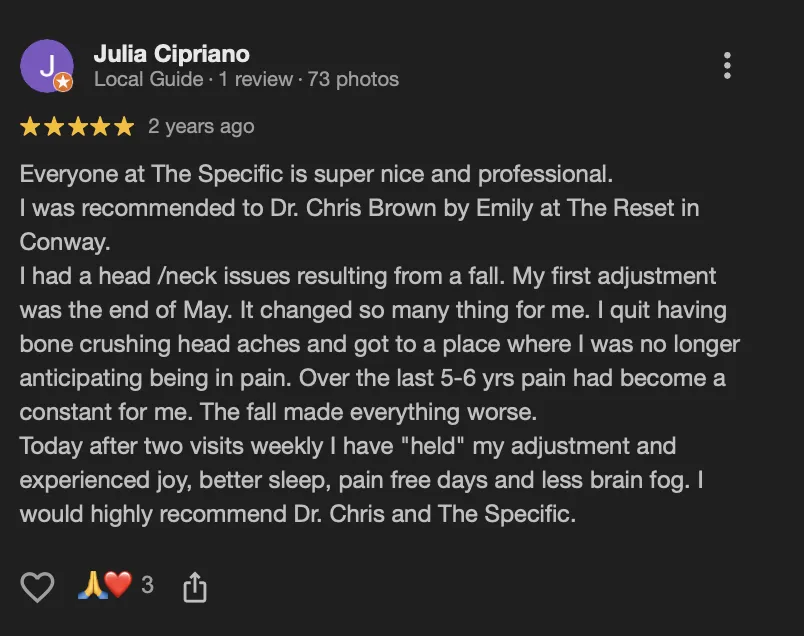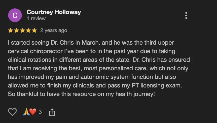Over the next few years, I dove deeply into the clinical side—tracking patterns, refining my assessments, and seeing firsthand how precise upper cervical adjustments transformed lives. It wasn’t just about reducing pain; it was about restoring clarity, energy, sleep, digestion, balance, and emotional resilience. The results spoke for themselves.