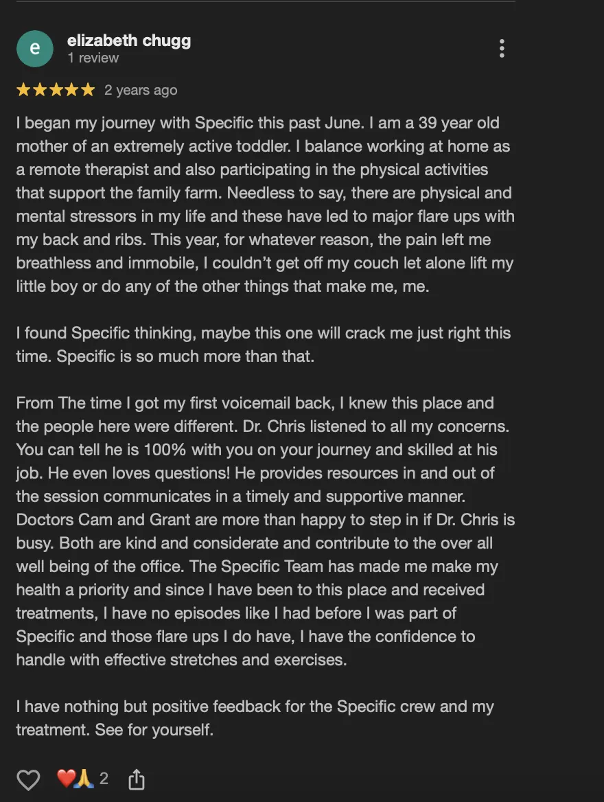 The goal isn’t constant care—it’s lasting stability. Our goal is to operate like a dentist; check for a cavity but hoping it's not there. We only adjust when absolutely necessary - not every visit. That way your body begins to learn its corrections and function independently like it's designed to.